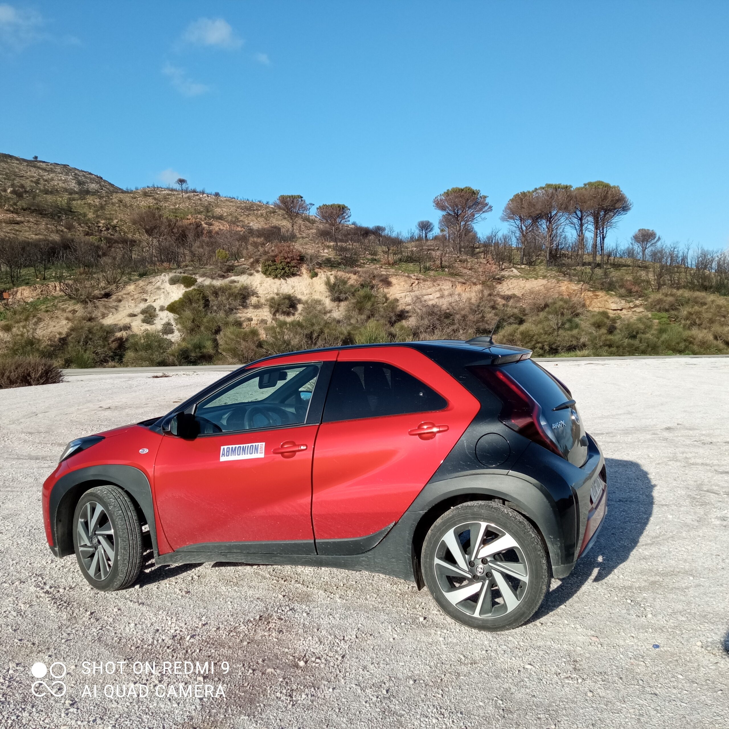 Πριν περάσουμε στις εντυπώσεις μας από το νέο μοντέλο, να θυμίζουμε ότι η Toyota έχει επιλέξει ένα ράλι εξέλιξης μιας μεγάλης γκάμας μοντέλων SUV/ Crossover , που θα ξεκινάει από τις πιο μικρές κατηγορίες Aygo, Yaris) θα φτάνει μέχρι το Land Cruiser. Ευνόητη είναι και η οικονομία κλίμακας σε κάθε παρόμοια κίνηση, αφού στο Aygo X γίνεται χρήση της πλατφόρμας TNGA-B, της ίδιας που χρησιμοποιήται στα Yaris και Yaris Cross, και εξασφαλίζει στο μικρότερό αυτό μοντέλο ελαφρώς μεγαλύτερες διαστάσεις, εσωτερικά και εξωτερικά. Ακόμα και ο χώρος αποσκευών (231 λίτρων) είναι πολύ ικανοποιητικός για την κατηγορία.
