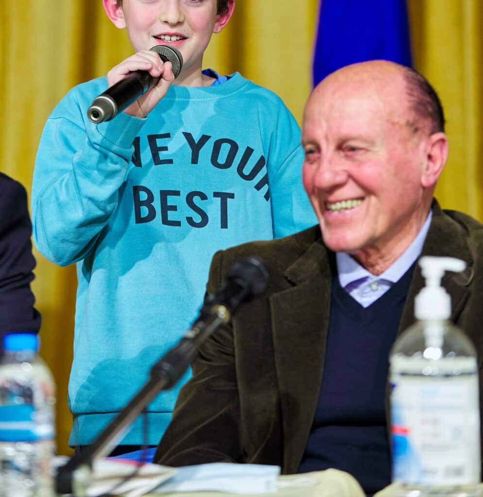 Χαιρετισμό έκανε ο Δήμαρχος Κηφισιάς Γιώργος Θωμάκος, εξαίροντας το έργο των δύο επίσημων καλεσμένων, ενώ με πρωτοβουλία του κ. Θωμάκου ο Δήμος θα συνδράμει στους υψηλούς σκοπούς που πρεσβεύουν τα έντυπα, αγοράζοντας μέρος των ημερολογίων-βιβλίων. Χαιρετισμό επίσης έκανε ο Αντιδήμαρχος Εκάλης και Εντεταλμένος Αθλητισμού Αχιλλέας Κουρέπης, ο οποίος έπλεξε το εγκώμιο του Δομάζου και για την προσφορά στο Δήμο μας, καθώς προπονεί αφιλοκερδώς τα Κηφισιωτόπουλα που ονειρεύονται να γίνουν μελλοντικοί «Δομάζοι».