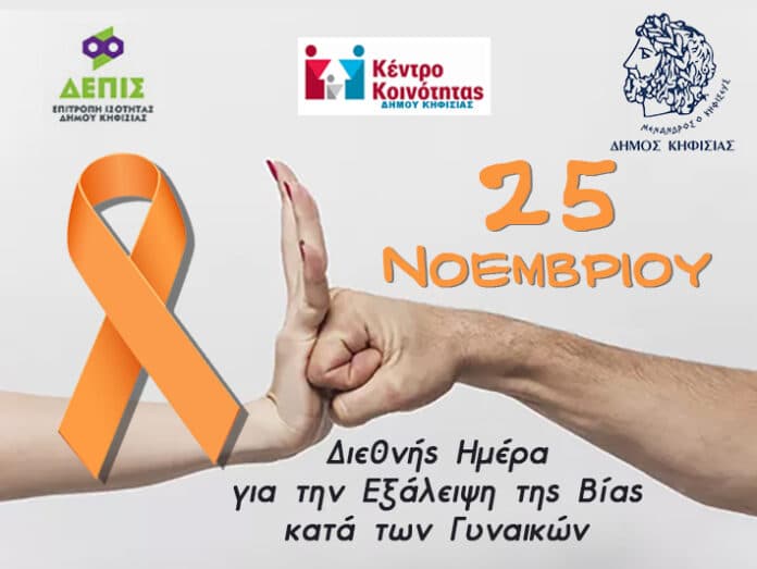 Η Δημοτική Επιτροπή Ισότητας του Δήμου Κηφισιάς επ’ αφορμή της 25ης Νοεμβρίου, Διεθνούς Ημέρας για την Εξάλειψη της Βίας κατά των Γυναικών τονίζει: