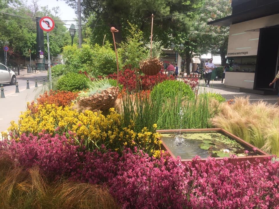 Μια ιδιαίτερη σύνθεση φυτών και λουλουδιών τοποθετήθηκε το πρωί στο Παραδοσιακό Εμπορικό Κέντρο της Κηφισιάς με στόχο το καλωσόρισμα της σταδιακής επανόδου στην κανονικότητα και το άνοιγμα των εμπορικών καταστημάτων.