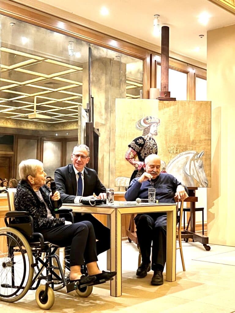 Πριν ακόμη ξεκινήσει η αφήγηση, η αγαπημένη πρωταγωνίστρια της θεατρικής σκηνής Μιμή Ντενίση πήρε θέση δίπλα στην Ελένη Αρβελέρ ως “ιδανική για την περίπτωση” όπως τόνισε η ομιλήτρια. Και πως αλλιώς αφού η Μιμή Ντενίση, με τις sold out παραστάσεις της “Σμύρνη μου αγαπημένη” σε Ελλάδα και εξωτερικό, επανέφερε στη μνήμη του …όπου γης Ελληνισμού την πικρή ιστορία του χαμού της μεγαλόπρεπης μικρασιατικής Σμύρνης, μεταλαμπαδεύοντας και στη νέα γενιά την αγάπη και τη νοσταλγία προς τις χαμένες πατρίδες.