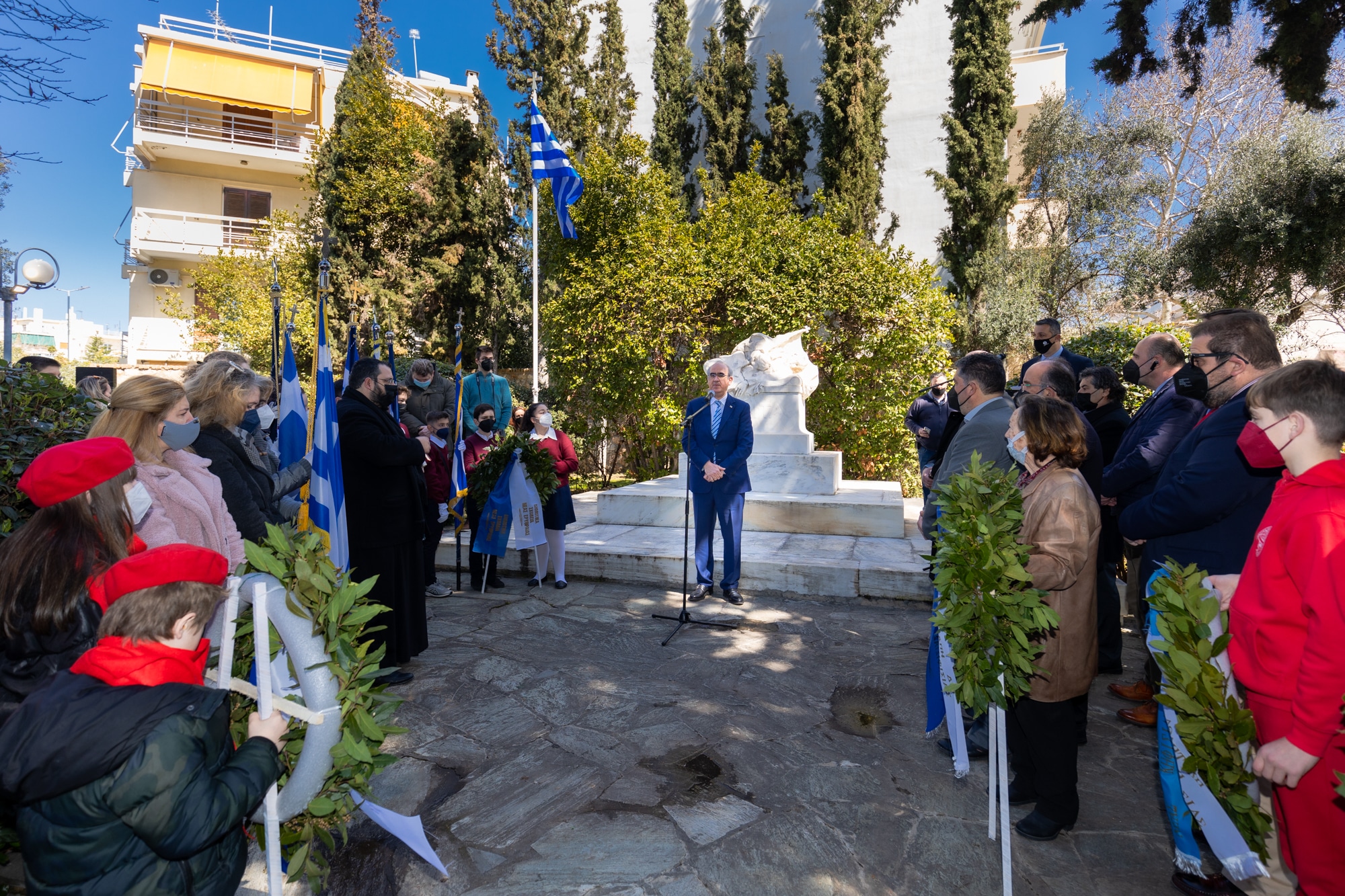 Αντιπροσωπείες μαθητών των σχολείων της Πρωτοβάθμιας και Δευτεροβάθμιας εκπαίδευσης της Κηφισιάς και της Νέας Ερυθραίας αλλά και των Παιδικών Σταθμών απότισαν φόρο τιμής για του ένδοξους του 1821.