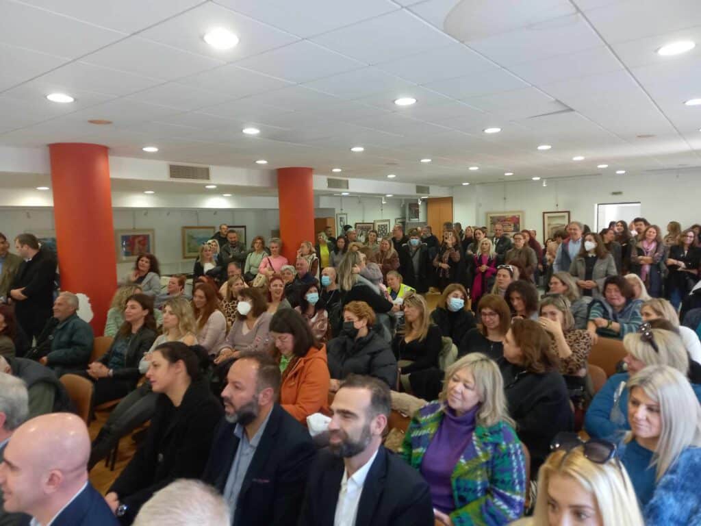 Στην κατάμεστη αίθουσα «Μ. Αναγνωστάκης», ο Δήμαρχος Λυκόβρυσης – Πεύκης, Μάριος Ψυχάλης ευχήθηκε σε όλους τους εργαζόμενους υγεία, δύναμη και μια καλή χρονιά και τους ευχαρίστησε για την αφοσίωση και την έως σήμερα συνεργασία.