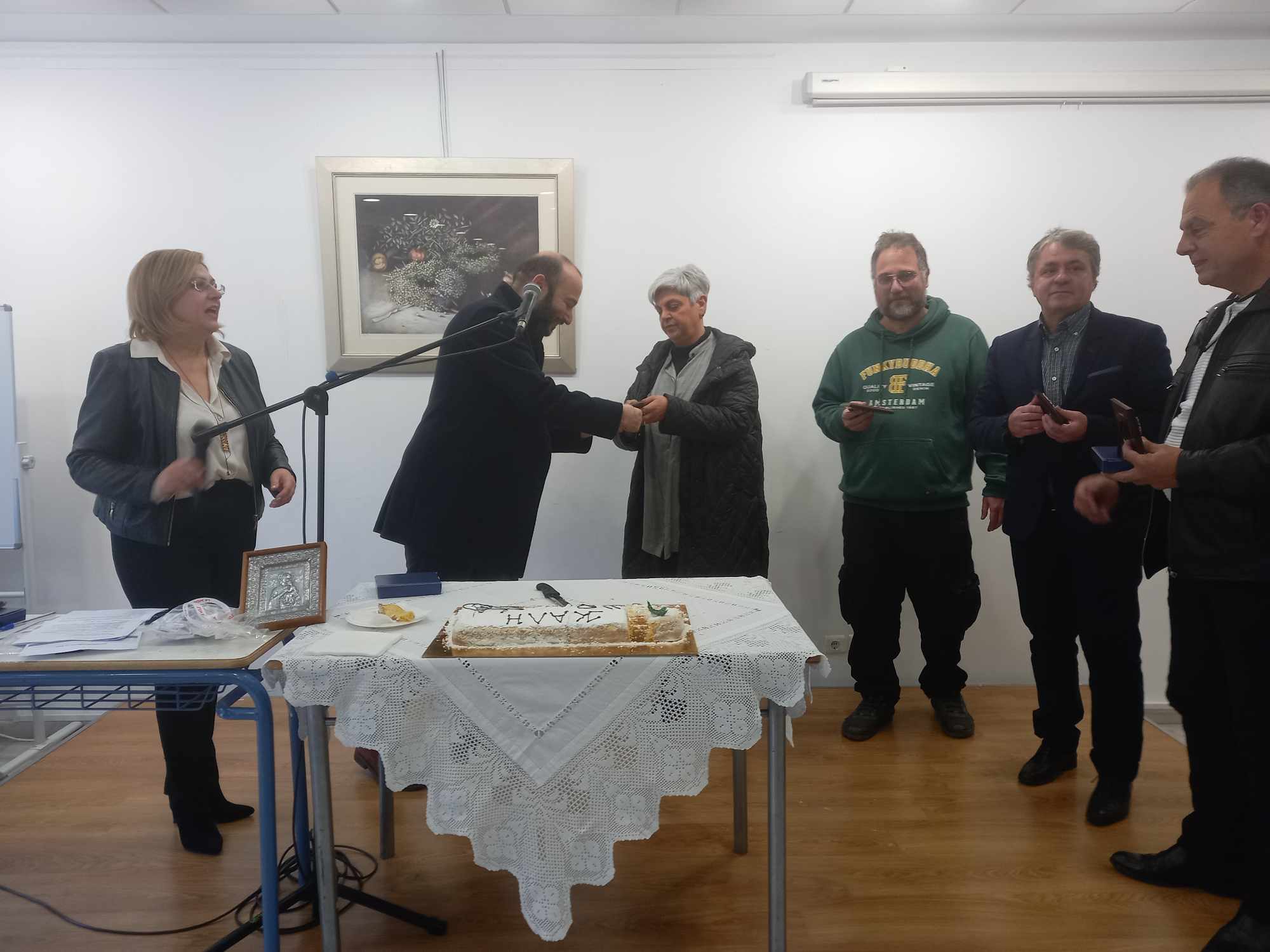 Στη συνέχεια, οι αντιδήμαρχοι και εντεταλμένη δημοτικοί σύμβουλοι έκοψαν τα κομμάτια από την πίτα τους, τα οποία αφιέρωσαν ο καθένας στο τμήμα της αρμοδιότητάς του. Αμέσως μετά, πήρε το λόγο ο πρόεδρος του σωματείου εργαζομένων του Δήμου Λυκόβρυσης – Πεύκης, Γιώργος Δασκαλάκης, ο οποίος ευχήθηκε στη νέα δημοτική Αρχή, εξέφρασε την πρόθεση να υπάρξει μια ομαλή και ειρηνική συνεργασία, ενώ τόνισε πως οι εργαζόμενοι θα συνεχίσουν να διεκδικούν καλύτερες συνθήκες εργασίας, εξισορρόπηση επαγγελματικής και οικογενειακής ζωής και ειρήνη σε όλο τον κόσμο.