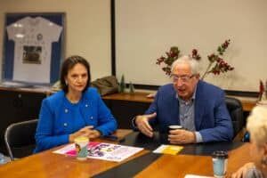 Πριν από την έναρξη της δράσης, ο Δήμαρχος Αμαρουσίου Θεόδωρος Αμπατζόγλου υποδέχτηκε την Πρόεδρο της Δημοτικής Επιτροπής Ισότητας Ελένη Λέκκα και τα μέλη της Επιτροπής, επιβεβαιώνοντας την έμπρακτη στήριξη της Δημοτικής Αρχής σε πρωτοβουλίες που στοχεύουν στην πρόληψη και αντιμετώπιση της έμφυλης βίας.