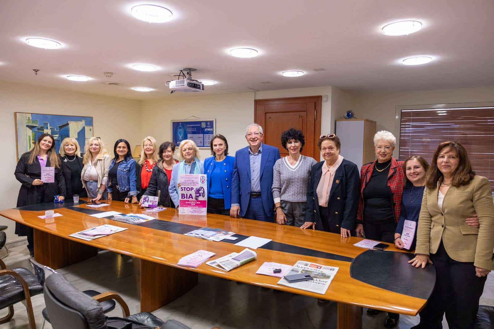 Πριν από την έναρξη της δράσης, ο Δήμαρχος Αμαρουσίου Θεόδωρος Αμπατζόγλου υποδέχτηκε την Πρόεδρο της Δημοτικής Επιτροπής Ισότητας Ελένη Λέκκα και τα μέλη της Επιτροπής, επιβεβαιώνοντας την έμπρακτη στήριξη της Δημοτικής Αρχής σε πρωτοβουλίες που στοχεύουν στην πρόληψη και αντιμετώπιση της έμφυλης βίας.