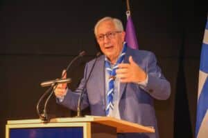 Ο οικοδεσπότης και Αρχηγός της Ένωσης Παλαιών Προσκόπων Αμαρουσίου Κώστας Βενέτης καλωσόρισε τους προσκεκλημένους, εκφράζοντας ευχαριστίες προς τον Δήμο Αμαρουσίου και τον Δήμαρχο για τη διαχρονική στήριξή τους στην Προσκοπική Κίνηση.