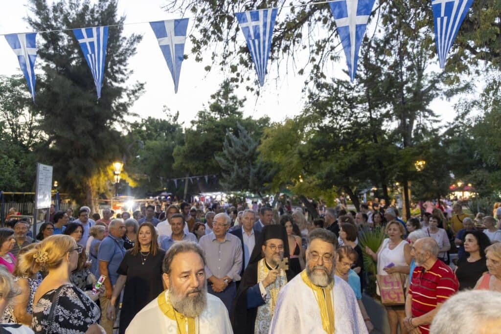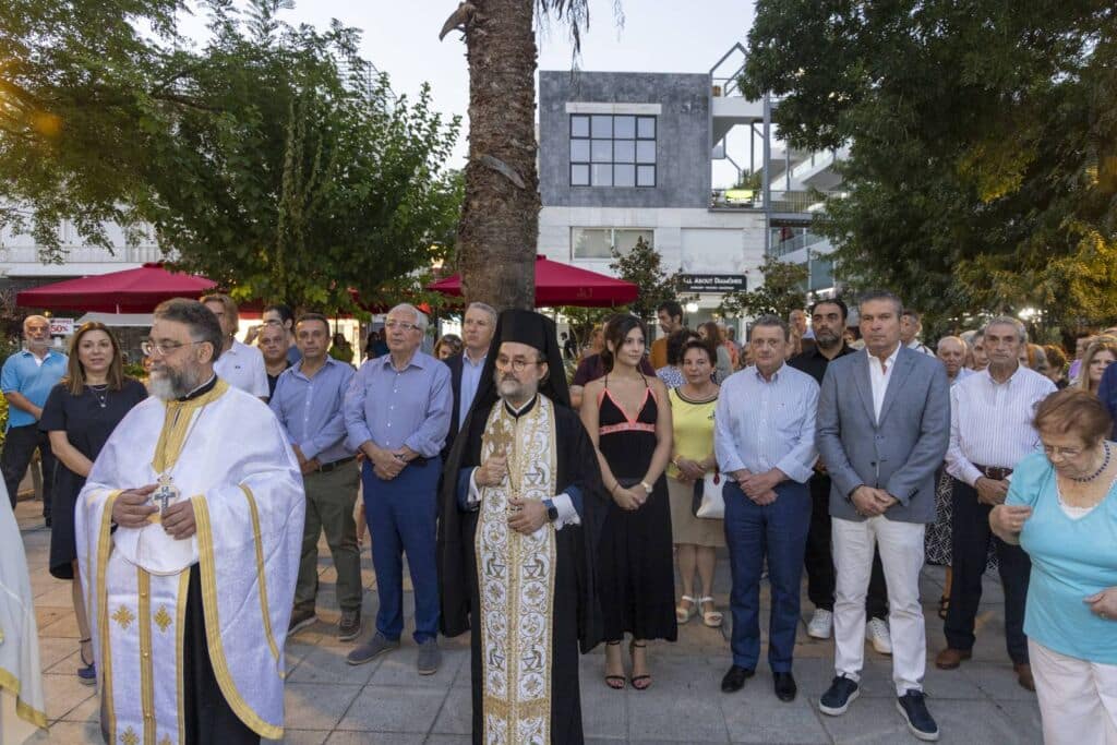 Τον Πανηγυρικό Εσπερινό μετ’ αρτοκλασίας τέλεσε ο Αρχιμανδρίτης Νικάνωρ, εκπροσωπώντας τον Σεβασμιώτατο Μητροπολίτη Κηφισίας, Αμαρουσίου, Ωρωπού και Μαραθώνα κ.κ. Κύριλλο, πλαισιωμένος από ιερείς των ενοριών της πόλης. Στη συνέχεια, η ιερή εικόνα της Μεταμόρφωσης λιτανεύτηκε γύρω από την πλατεία, με πλήθος πιστών να ακολουθεί σε κλίμα συγκίνησης και ευλάβειας.