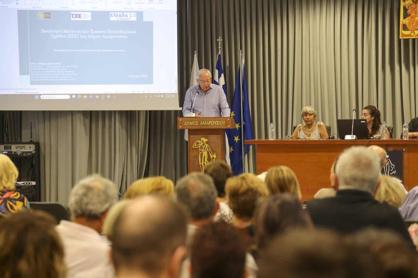 Με υψηλό ενδιαφέρον και με τη συμμετοχή του Δημάρχου Αμαρουσίου Θεόδωρου Αμπατζόγλου, πραγματοποιήθηκε την Τετάρτη 2 Ιουλίου 2025 στην αίθουσα Δημοτικού Συμβουλίου του Δημαρχιακού Μεγάρου Αμαρουσίου, η παρουσίαση των τριών εναλλακτικών σεναρίων χωρικής ανάπτυξης της πόλης, που υπάγεται στο Α΄στάδιο της μελέτης για το Τοπικό Πολεοδομικού Σχεδίου (ΤΠΣ) Δήμου Αμαρουσίου.