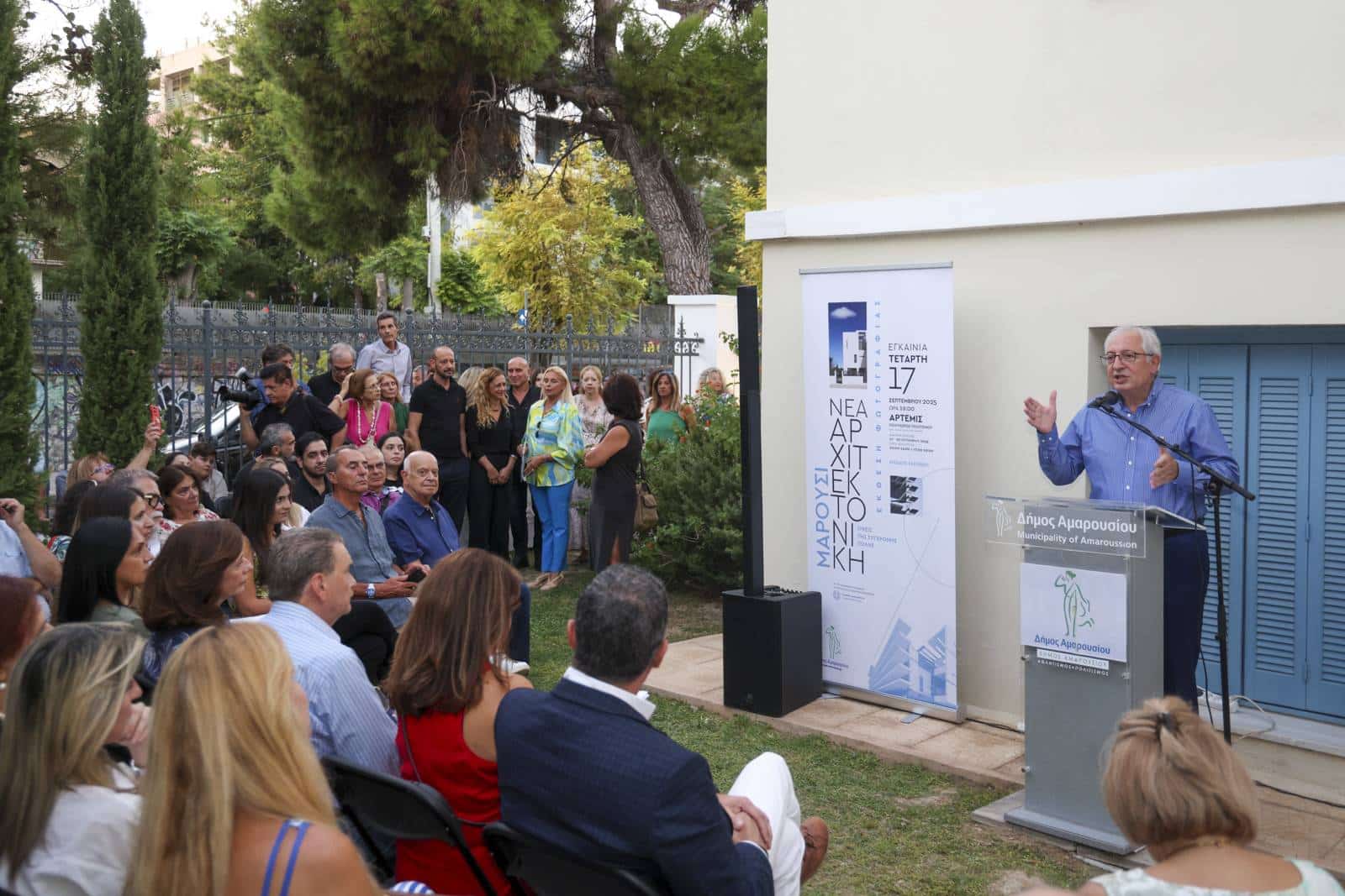 Ο Δήμαρχος Αμαρουσίου Θεόδωρος Αμπατζόγλου εγκαινίασε την Έκθεση Φωτογραφίας «Μαρούσι, Όψεις της Σύγχρονης Πόλης – Η Νέα Αρχιτεκτονική», με μεγάλη συμμετοχή κοινού, το βράδυ της Τετάρτης 17 Σεπτεμβρίου 2025, στον Πολυχώρο Πολιτισμού «ΑΡΤΕΜΙΣ».