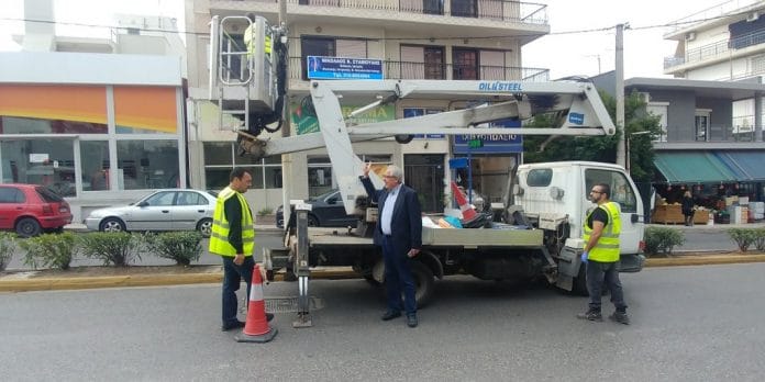 Τις εργασίες αποξήλωσης διαφημιστικών αφισών και πινακίδων αναρτημένων σε σημεία των κεντρικών οδικών αρτηριών της πόλης, στο πλαίσιο σχετικής πρωτοβουλίας που έχει αναλάβει η Περιφέρεια Αττικής, επόπτευσε ο Δήμαρχος Αμαρουσίου Θεόδωρος Αμπατζόγλου, συνοδευόμενος από τον αρμόδιο Αντιδήμαρχο Καθαριότητας Επαμεινώνδα Κατσιγιάννη, στέλνοντας το δικό του μήνυμα στην προσπάθεια για καθαρούς δρόμους από αφίσες και παράνομες διαφημιστικές πινακίδες.