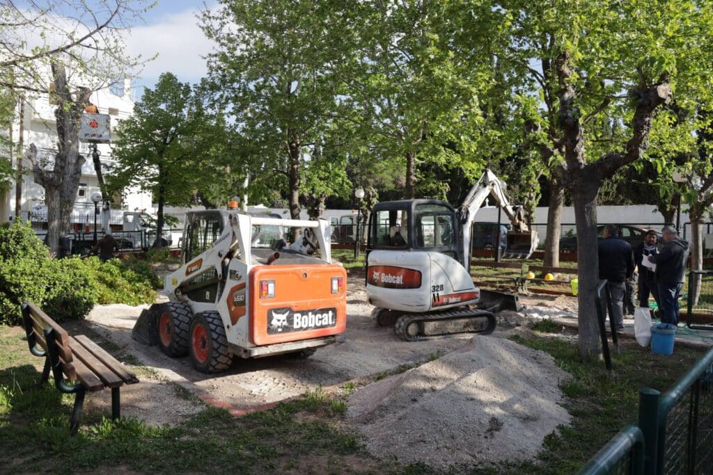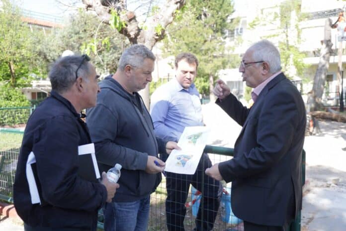 Αυτοψία του Δημάρχου Αμαρουσίου Θεόδωρου Αμπατζόγλου κατά την έναρξη εργασιών ανακαίνισης της Παιδικής Χαράς στην Πλατεία Ηπειρώτικων