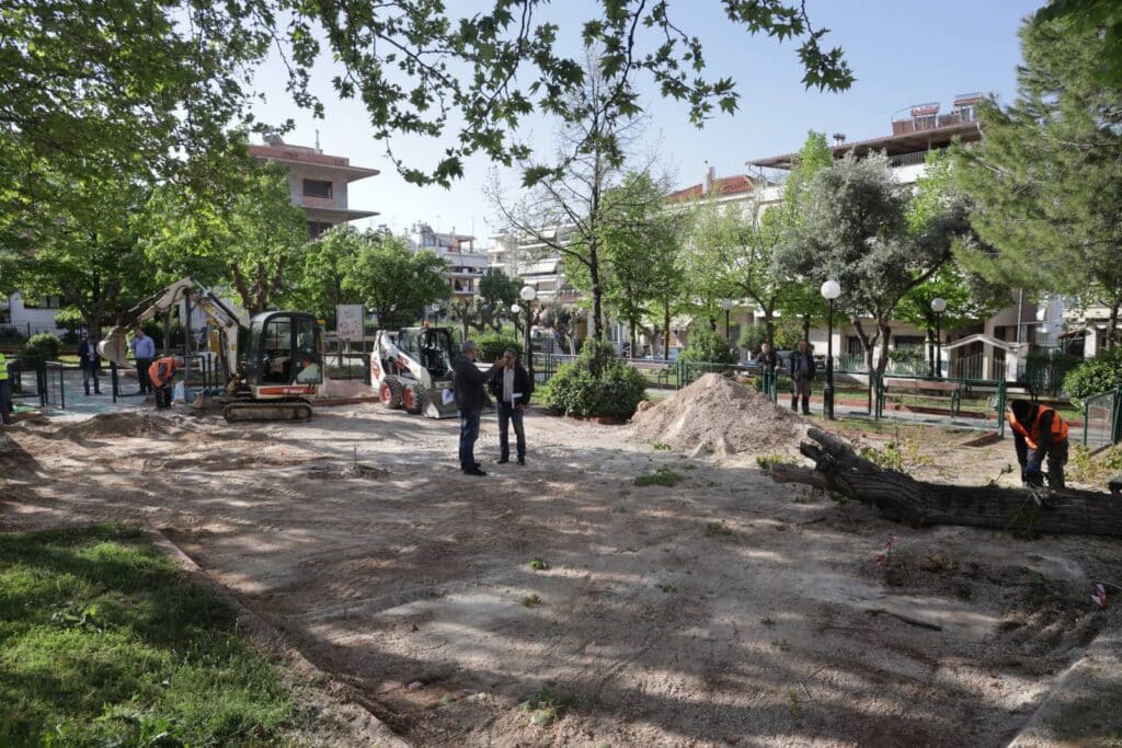 Αυτοψία πραγματοποίησε ο Δήμαρχος Αμαρουσίου Θεόδωρος Αμπατζόγλου, παρόντος του αρμόδιου Αντιδημάρχου Περιβάλλοντος και Ποιότητας Ζωής Γιάννη Ιωαννίδη, στην Παιδική Χαρά της Πλατείας Ηπειρώτικων στην Κοκκινιά, όπου ξεκίνησαν οι εργασίες ολικής ανακατασκευής της.