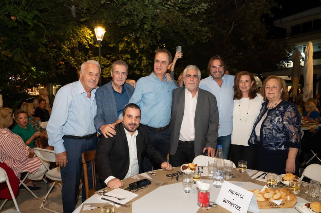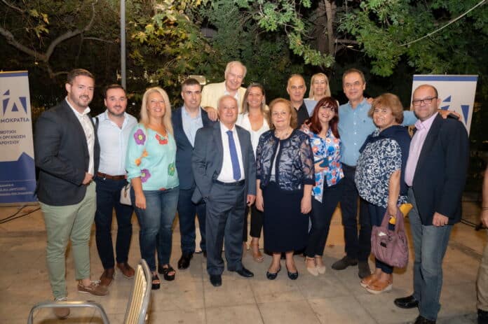 Η αποψινή αθρόα προσέλευσή σας που επετειακά συμπίπτει με τη γενέθλια ημέρα του Κόμματός μας, εκτός των άλλων αποτελεί μια απότιση ευχαριστιών προς αυτούς που επί 50 χρόνια διοίκησαν, άνδρωσαν και καθιέρωσαν το Κόμμα μας ηγέτιδα πολιτική δύναμη της χώρας. Δεν είναι της παρούσης η λεπτομερής αναφορά στο έργο των 9 σπουδαίων πολιτικών που διετέλεσαν αρχηγοί του Κόμματος σ’ αυτή τη διαδρομή του μισού αιώνα. Όμως, δε μπορώ να μη σταθώ και να μην αναφερθώ με ευγνωμοσύνη, συγκίνηση και θαυμασμό στον ιδρυτή της Ν.Δ και πρώτο αρχηγό μας, τον Κωνσταντίνο Καραμανλή.