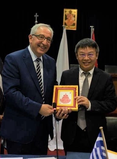 Ο Δήμαρχος Αμαρουσίου κ. Θεόδωρος Αμπατζόγλου αναφερόμενος στις σχέσεις των δύο λαών και στους δεσμούς φιλίας και αλληλεγγύης τόνισε ότι «αυτές βασίζονται στις βαθιές ρίζες στους τομείς του πολιτισμού και της εκπαίδευσης», ενώ παράλληλα μίλησε για την αδελφοποίηση της πόλης Τσάογιανγκ, ως αδελφή Ολυμπιακή πόλη με το Μαρούσι.