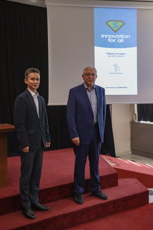 Η παρουσίαση πραγματοποιήθηκε παρουσία του Προέδρου της Samsung Electronics Hellas Byung Moo (Theophilos) Shin, του επικεφαλής του τμήματος κινητών συσκευών σε Ελλάδα και Κύπρο, Αριστείδη Παρασκευόπουλου, και στελεχών της ομάδας Marketing. Τα εκπαιδευτικά βίντεο με τίτλο: «Γέφυρα στο αύριο για κάθε ηλικία» (https://youtu.be/0Al9I44nzwA, https://youtu.be/lOthiM51bDQ, https://youtu.be/QYLxgobvODE) αφορούν στην εκπαίδευση και στην εξοικείωση κυρίως των ανθρώπων της τρίτης ηλικίας με τα smartphones και τα tablets, αλλά και κάθε δημότη που επιθυμεί να εισάγει στη ζωή του τις διευκολύνσεις από τη χρήση των νέων τεχνολογιών.