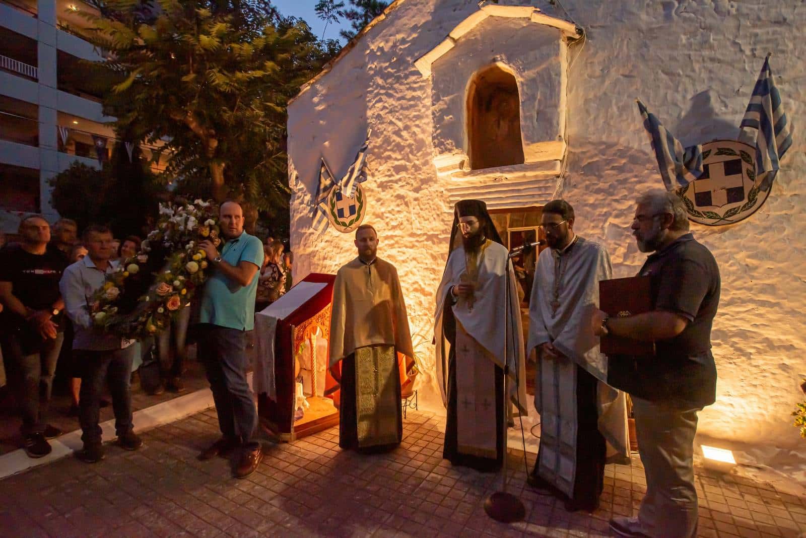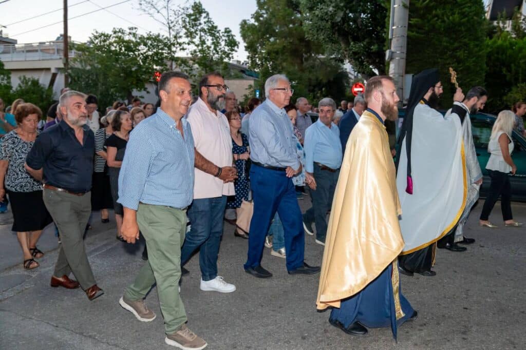Μετά την ακολουθία, ο Δήμαρχος μαζί με το εκκλησίασμα συμμετείχαν με κατάνυξη στη λιτάνευση της Ιεράς Εικόνας γύρω από τον Ναό, ενώ η Φιλαρμονική του Δήμου συνόδευε την πομπή με εκκλησιαστικούς ύμνους.