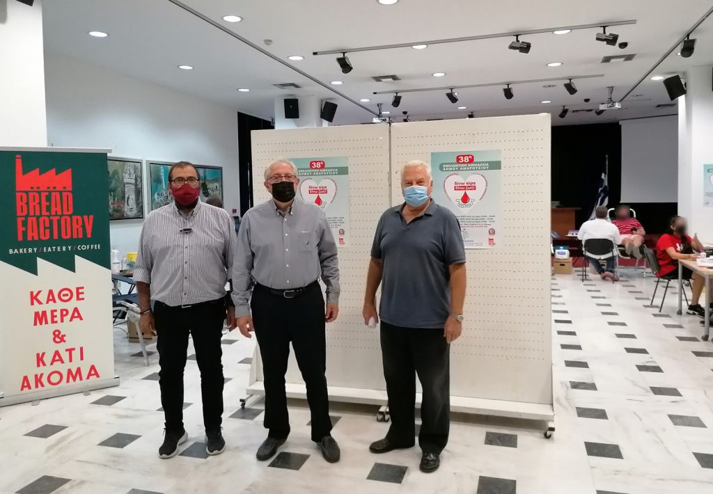 Ο Δήμαρχος Αμαρουσίου, Θεόδωρος Αμπατζόγλου κατά την παρουσία του στην πρώτη ημέρα της 38ης Εθελοντικής Αιμοδοσίας, συνοδευόμενος από τον Αντιδήμαρχο Πολιτικής Προστασίας και Δημόσιας Υγείας Στέφανο Τσιπουράκη και τον Πρόεδρο του ΟΙΚΟΙΠΑΔΑ Πέτρο Κόνιαρη, δήλωσε:
