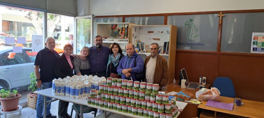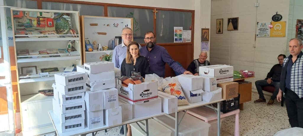 Τα τρόφιμα που προσφέρθηκαν παρέλαβε ο Πρόεδρος του ΟΚΟΙΠΑΔΑ Πέτρος Κόνιαρης, ο οποίος ευχαρίστησε και εκ μέρους του Δημάρχου Θεόδωρου Αμπατζόγλου, τους συμπολίτες μας για την ευγενική τους προσφορά.