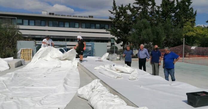 Με εντατικούς ρυθμούς προχωρούν οι εργασίες κατασκευής κλειστού γηπέδου μπάσκετ – τύπου λυόμενου στεγάστρου – στο 4ο Γενικό Λύκειο Αμαρουσίου «Ζεκάκειο» που ξεκίνησαν τον προηγούμενο μήνα.