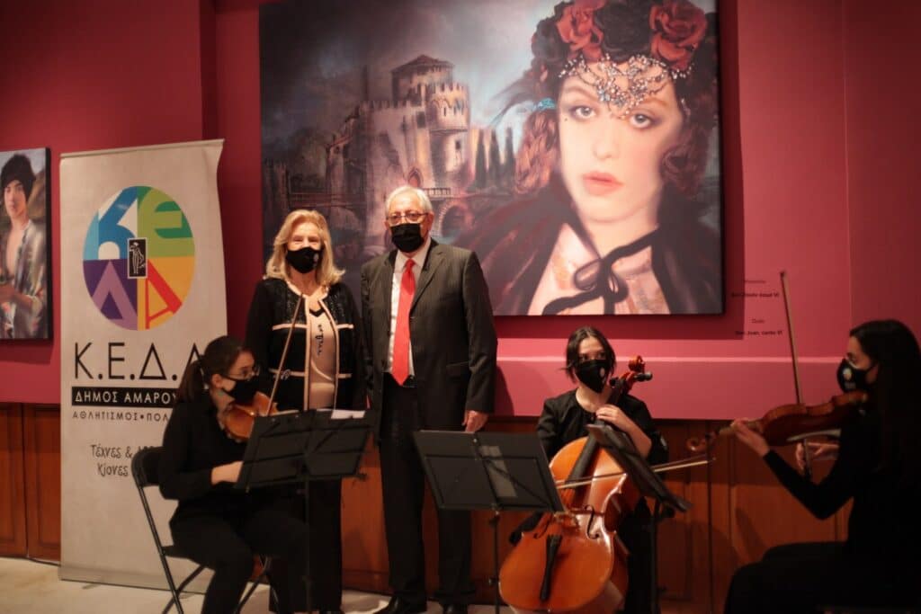 Την πρωτότυπη έκθεση της γνωστής Μαρουσιώτισσας και διεθνούς αναγνώρισης εικαστικού Λυδίας Βενιέρη, εμπνευσμένη από τα ποιήματα, τις εικόνες και την ατμόσφαιρα του έργου του Λόρδου Βύρωνα, εγκαινίασε ο Δήμαρχος Αμαρουσίου κ. Θεόδωρος Αμπατζόγλου, στην ανακαινισμένη Ολυμπιακή Δημοτική Πινακοθήκη «Σπύρος Λούης», την Παρασκευή 19 Νοεμβρίου 2021, στο πλαίσιο των επετειακών δράσεων του Δήμου Αμαρουσίου για τα 200 χρόνια της Εθνικής Ανεξαρτησίας.