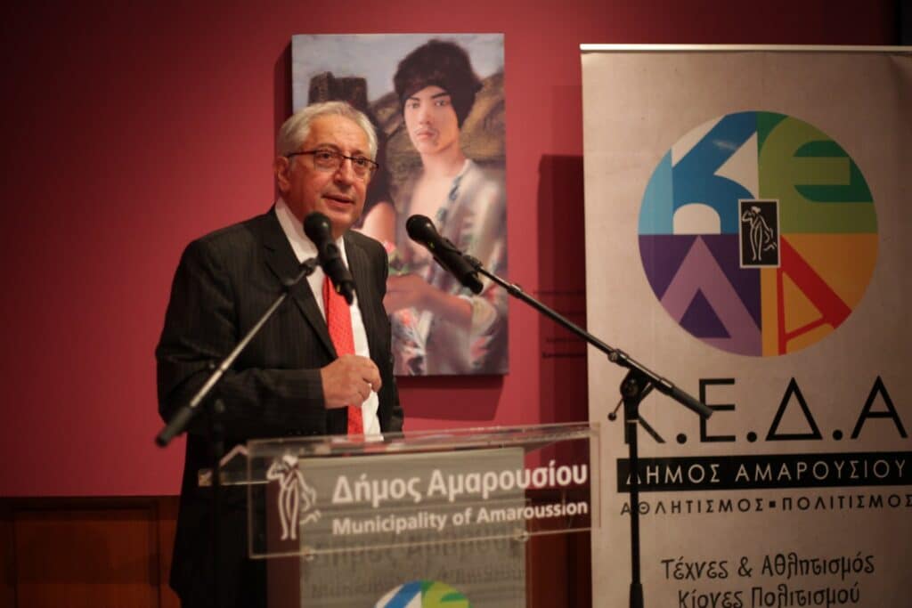 Στο θερμό καλωσόρισμά του στην τελετή των εγκαινίων ο Δήμαρχος Αμαρουσίου κ. Θεόδωρος Αμπατζόγλου, υπογραμμίζοντας την ιστορικότητα της πόλης με την πλούσια φυσική και πολιτιστική κληρονομιά και την εξαιρετικά ενδιαφέρουσα σύγχρονη καλλιτεχνική παραγωγή, τόνισε ότι «αναδεικνύοντας αυτό τον πλούτο, προσδίδουμε προστιθέμενη αξία στο σύγχρονο Μαρούσι, αίγλη και κύρος στην πόλη και δυναμική ώθηση στην τοπική οικονομία και ανάπτυξη.»