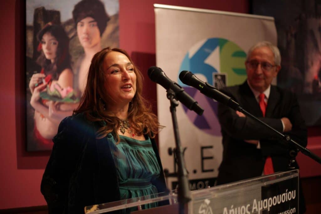 Ειδική αναφορά έκανε η καλλιτέχνης στο συγγραφικό και το μεταφραστικό έργο του Λόρδου Βύρωνα, καθώς και στην φιλελληνική ποίηση που έγραψε εμπνευσμένος από την Ελλάδα, την οποία γνώρισε στο νεανικό του ταξίδι στη χώρα μας.