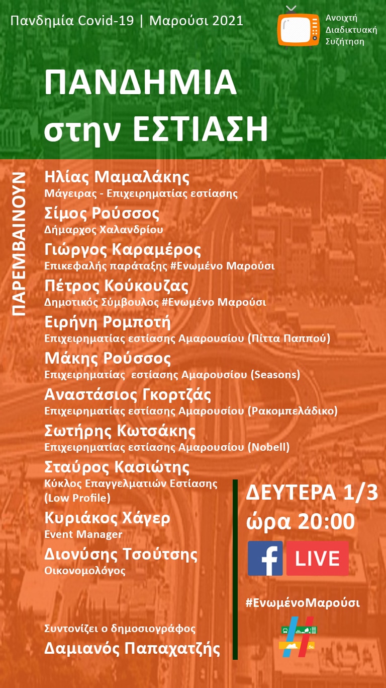 Πανδημία στην Εστίαση, 3η εκδήλωση της παράταξης #Ενωμένο Μαρούσι την 1η Μαρτίου