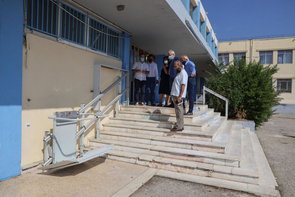 Συγκεκριμένα κατά τη διάρκεια της θερινής περιόδου – και με την ευγενική χορηγία του “Ομίλου Υγεία” κατασκευάστηκαν δύο διαφορετικού τύπου ηλεκτροκίνητα αναβατόρια αλουμινίου (πλατφόρμα – κάθισμα) και για δύο διαφορετικά επίπεδα, με στόχο να δημιουργήσουν τις συνθήκες που θα κάνουν το κτίριο του σχολείου προσεγγίσιμο και φιλικό στα άτομα με αναπηρίες και στα εμποδιζόμενα άτομα κάθε κατηγορίας. Έτσι δίνονται λύσεις στα λειτουργικά, τεχνικά και μορφολογικά θέματα, ώστε να διασφαλιστεί η οριζόντια και κατακόρυφη ανεμπόδιστη, αυτόνομη και ασφαλής διακίνηση των ατόμων αυτών, με τη χρήση από μαθητές, εκπαιδευτικούς ή και γονείς.