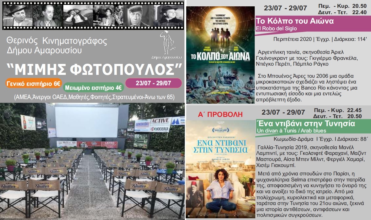 Πρόγραμμα θερινού κινηματοργάφου “Μίμης Φωτόπουλος” από 22/07 – 29/07
