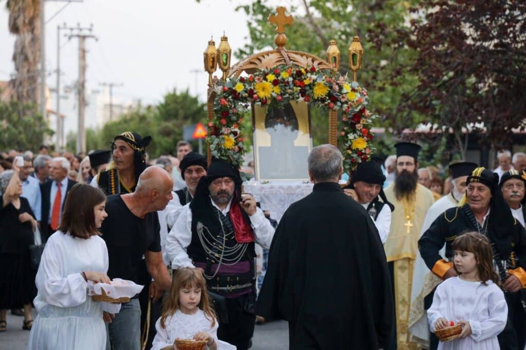 Μετά τον πανηγυρικό εσπερινό, χοροστατούντος του Αρχιμανδρίτου Νικάνορος Καραγιάννη, εκ μέρους της Μητροπόλεως Κηφισίας, Αμαρουσίου, Ωρωπού και Μαραθώνος, σύσσωμο το εκκλησίασμα συνόδευσε την περιφορά της Ιερής Εικόνας του Κοσμά του Αιτωλού πέριξ του Ναού με την Μπάντα του Δήμου Αμαρουσίου να παιανίζει θρησκευτικούς ύμνους.
