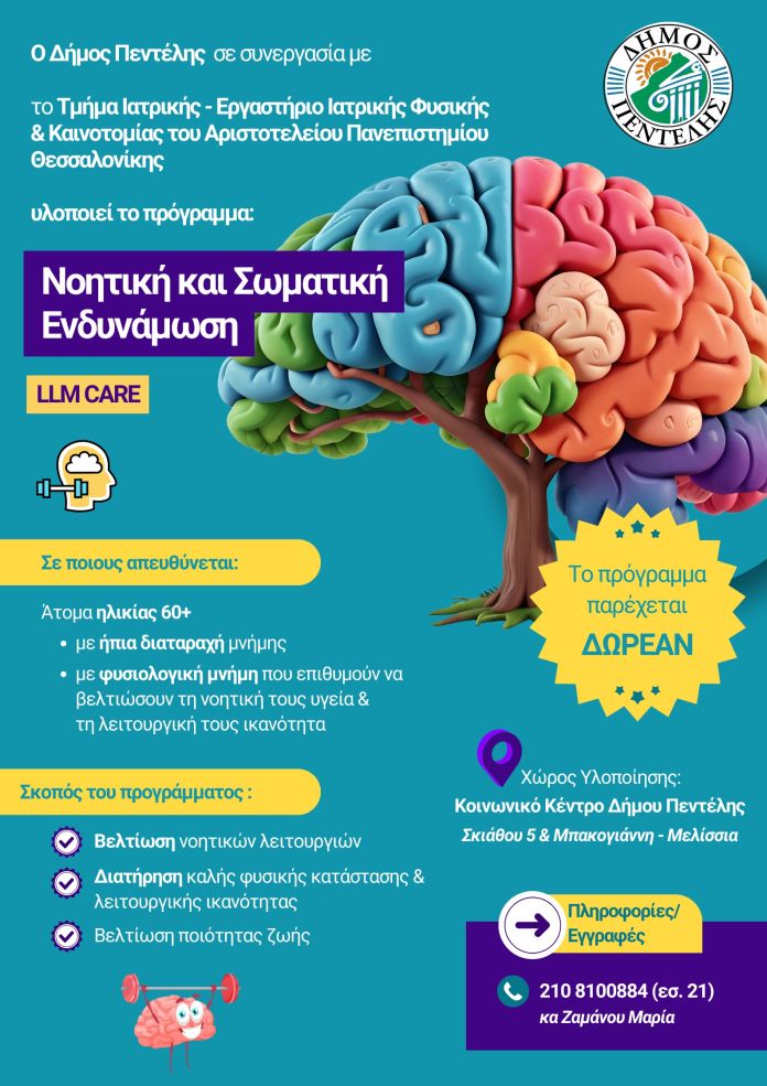 Δωρεάν πρόγραμμα Νοητικής και Σωματικής ενδυνάμωσης (LLM CARE) στον Δήμο  Πεντέλης