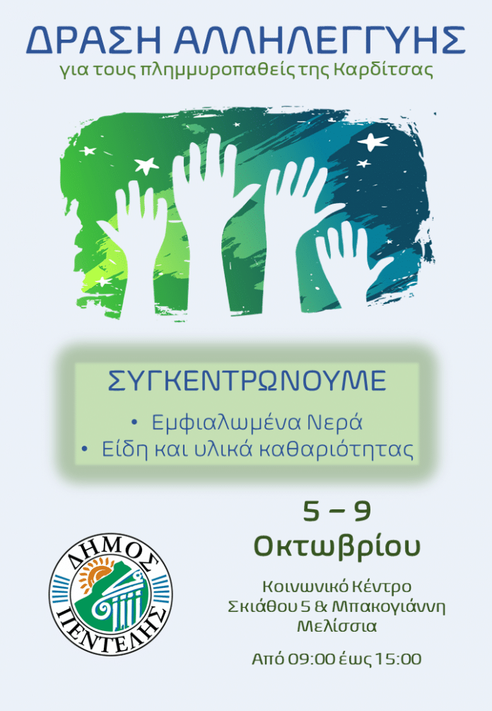 Ο Δήμος Πεντέλης στέκεται με αλληλεγγύη δίπλα στους πλημμυροπαθείς της Καρδίτσας.