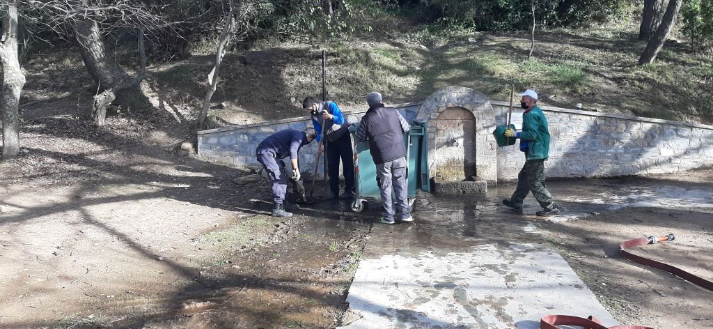 «Το διήμερο Κυριακής 7/2/2021 και Δευτέρας 8/2/2021 ολοκληρώσαμε τον καθαρισμό και την συντήρηση του χώρου αναψυχής στην Πηγή Καρακαντά, που απαιτήθηκε λόγω της πολύ μεγάλης επισκεψιμότητας που δέχεται λόγω της πανδημίας. Έγινε καθαρισμός του χώρου από φύλλα και σκουπίδια, κλάδεμα δένδρων και θάμνων, απόφραξη φρεατίων, επισκευή και βάψιμο των τραπεζοπάγκων και παγκακιών του χώρου.