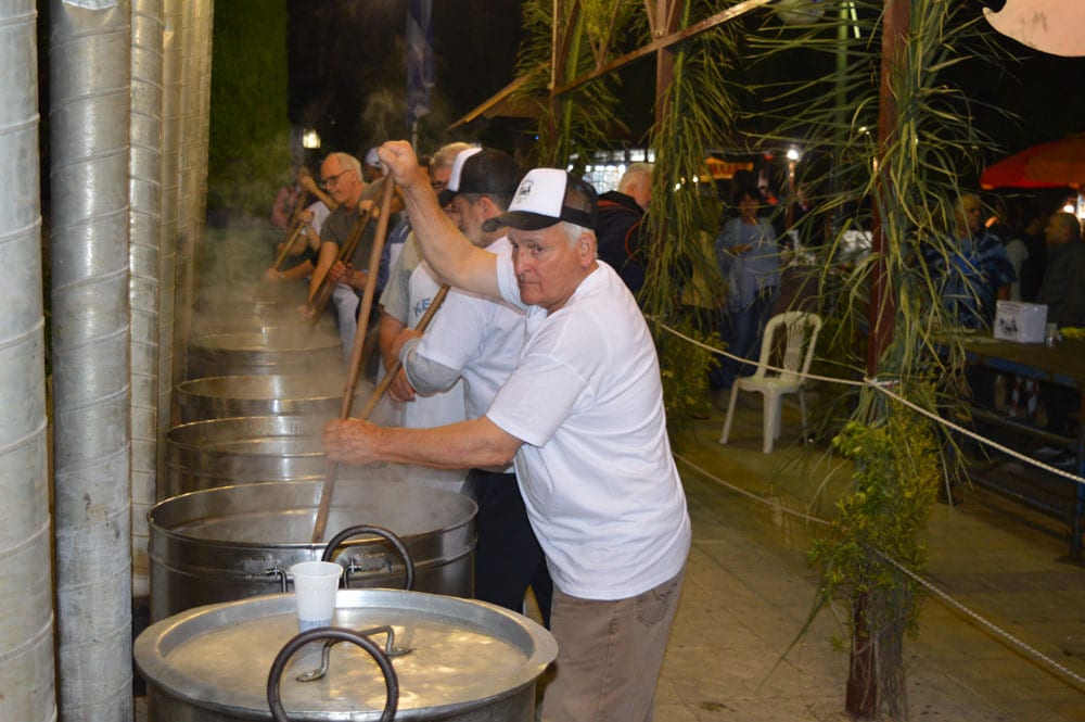 Την άλλη μέρα το πρωί, όταν τελειώσει η επίσημη Δοξολογία στον Ι. Ναό του Αγίου Γεωργίου, οι Ιερείς βγαίνουν και περνούν απέναντι, στο προαύλιο του Πολιτιστικού Κέντρου για να ευλογήσουν το Κεσκέκι που είναι πλέον έτοιμο μέσα στα καζάνια. Μετά την ευλογία, το φαγητό μοιράζεται στον κόσμο μαζί με άφθονο κρασί και το γλέντι ξεκινά. Τα χορευτικά συγκροτήματα του Συλλόγου, με παραδοσιακές φορεσιές και με τη συνοδεία ζωντανής ορχήστρας γεμίζουν την πλατεία και ο κόσμος καταχειροκροτεί. Καρσιλαμάδες, χασάπικα, πολίτικα, τραγούδια και χοροί πλαισιώνουν τη γιορτή που συνεχίζεται μέχρι το απόγευμα με πολύ κέφι.