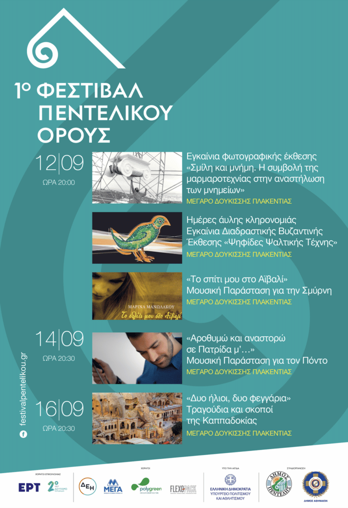 - «Σμίλη και Μνήμη. Η συμβολή της μαρμαροτεχνίας στην αναστήλωση των μνημείων», Έκθεση Φωτογραφίας της Υπηρεσίας Συντήρησης Μνημείων Ακρόπολης. Το μάρμαρο και οι μαρμαροτεχνίτες, είναι συνυφασμένες με την άυλη κληρονομιά του Πεντελικού μας Όρους. Κεντρικός πυρήνας της έκθεσης είναι η έκθεση φωτογραφίας από τα έργα αναστήλωσης στην Ακρόπολη.
