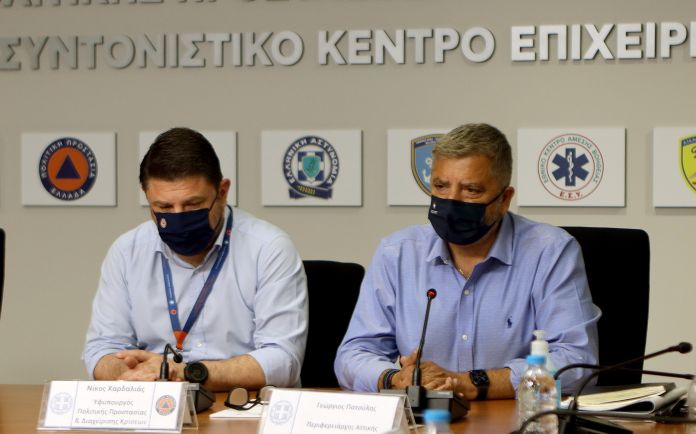 Ευρεία σύσκεψη με τη συμμετοχή και του Περιφερειάρχη Αττικής Γ. Πατούλη πραγματοποιήθηκε σήμερα στο Κέντρο Επιχειρήσεων της Πολιτικής Προστασίας υπό τον Υπουργό Προστασίας του Πολίτη, Μιχάλη Χρυσοχοΐδη και τον Υφυπουργό Πολιτικής Προστασίας και Διαχείρισης Κρίσεων, Νίκο Χαρδαλιά. Στη σύσκεψη συμμετείχαν επίσης ο Αναπληρωτής Υπουργός Εσωτερικών αρμόδιος για θέματα Αυτοδιοίκησης, Στέλιος Πέτσας, ο Αντιπεριφερειάρχης Αττικής αρμόδιος για την Πολιτική Προστασία, Βασίλης Κόκκαλης, δήμαρχοι και εκπρόσωποι φορέων. Κεντρικό θέμα της συνάντησης ήταν η συγκεκριμενοποίηση των εργασιών προληπτικού χαρακτήρα από πλευράς των Δήμων της Αττικής στις 18 περιοχές που έχουν κηρυχθεί σε Κατάσταση Ειδικής Κινητοποίησης Πολιτικής Προστασίας.