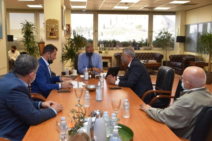 Ο Περιφερειάρχης Αττικής Γ. Πατούλης στο πλαίσιο των επαφών που πραγματοποιεί με όλους τους Δημάρχους της Αττικής προκειμένου να ενημερωθεί για την πορεία των έργων που χρηματοδοτεί η Περιφέρεια αλλά και τις τοπικές ανάγκες που υπάρχουν με στόχο τη διευκόλυνση της καθημερινότητας των πολιτών, συναντήθηκε με τον Δήμαρχο Μαρκοπούλου-Μεσογαίας Κ. Αλλαγιάννη.