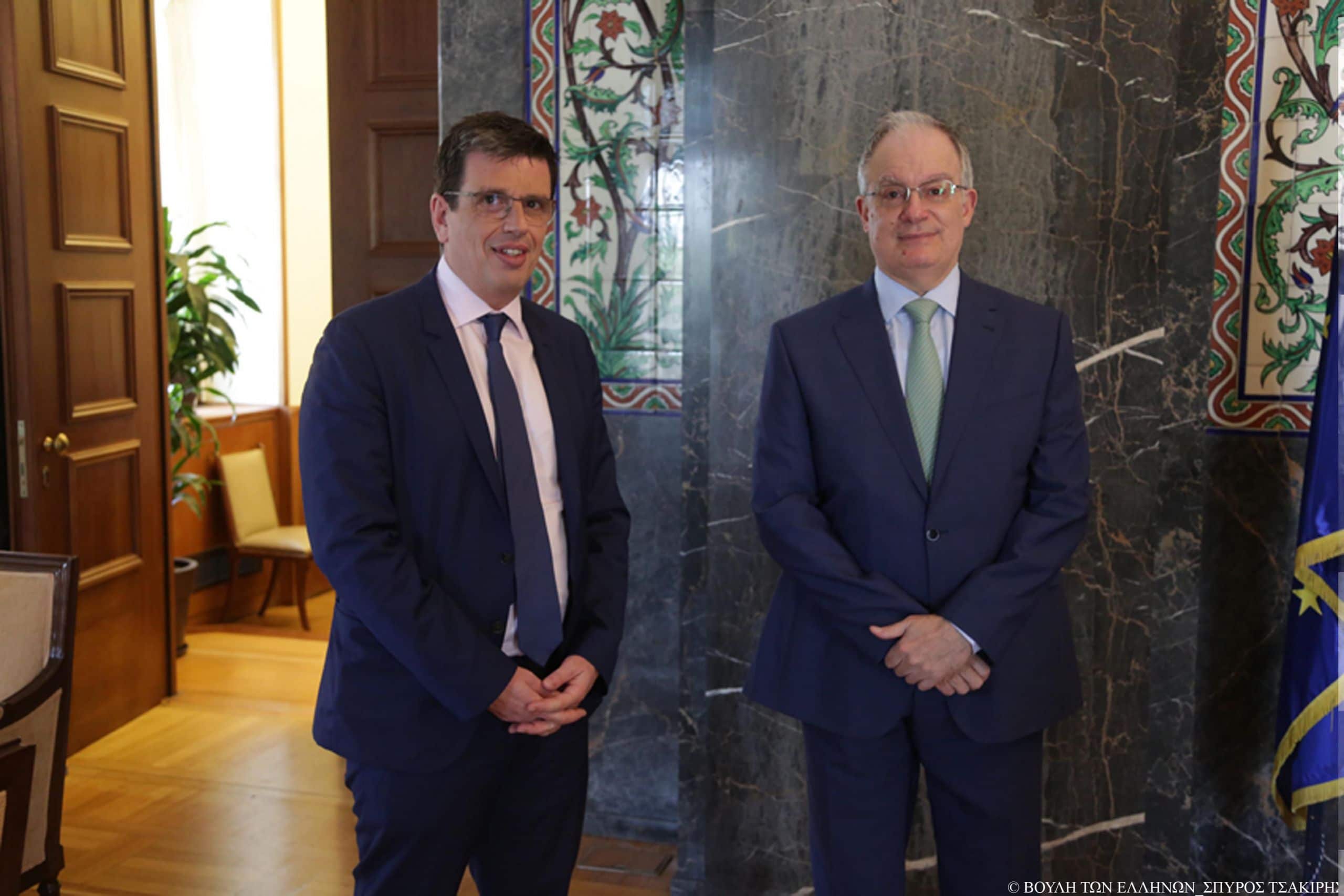 Με 10.000 μάσκες για την πρόληψη της εξάπλωσης του κορονοϊού εξοπλίστηκε η Υγειονομική Υπηρεσία της Βουλής των Ελλήνων, με δωρεά του Παγκόσμιου Συμβουλίου Ανοχής και Ειρήνης. Ο Πρόεδρος της Βουλής, κ. Κωνσταντίνος Τασούλας, συναντήθηκε χτες (1η Ιουλίου 2020) με τον βουλευτή της Νέας Δημοκρατίας του Β1 Βόρειου Τομέα Αθηνών, κ. Δημήτρη Καιρίδη, καθώς η συγκεκριμένη δωρεά πραγματοποιήθηκε με πρωτοβουλία και διαμεσολάβησή του, ως μέλους της Κοινοβουλευτικής Συνέλευσης του Συμβουλίου. Ο κ. Τασούλας ευχαρίστησε ιδιαίτερα τον κ. Καιρίδη για την παρέμβασή του, χάρη στην οποία υλοποιήθηκε αυτή η χρήσιμη και πρακτική δωρεά στη Βουλή των Ελλήνων, για την προστασία της δημόσιας υγείας.