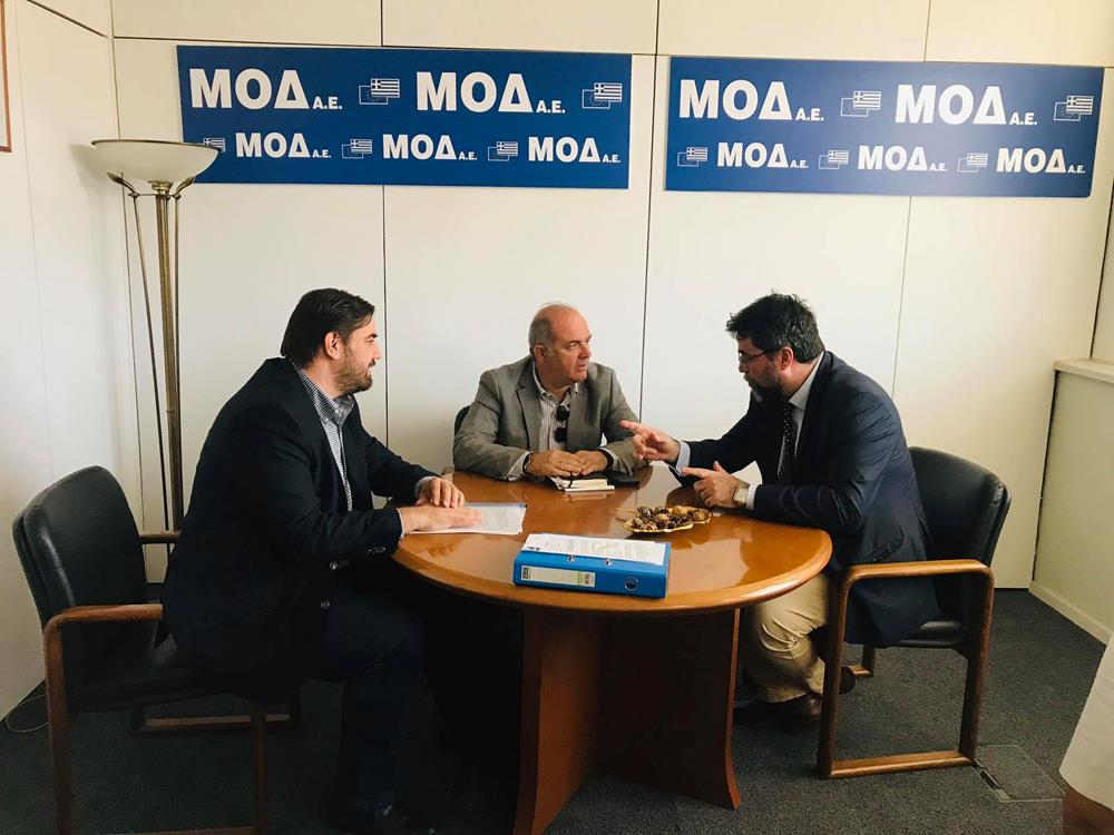 Συνάντηση με τον Πρόεδρο της Μονάδας Οργάνωσης της Διαχείρισης Αναπτυξιακών Προγραμμάτων (ΜΟΔ Α.Ε.) Γεώργιο-Εμμανουήλ Παπαδημητρίου είχε την Παρασκευή 10 Ιουλίου ο Δήμαρχος Διονύσου Γιάννης Καλαφατέλης.