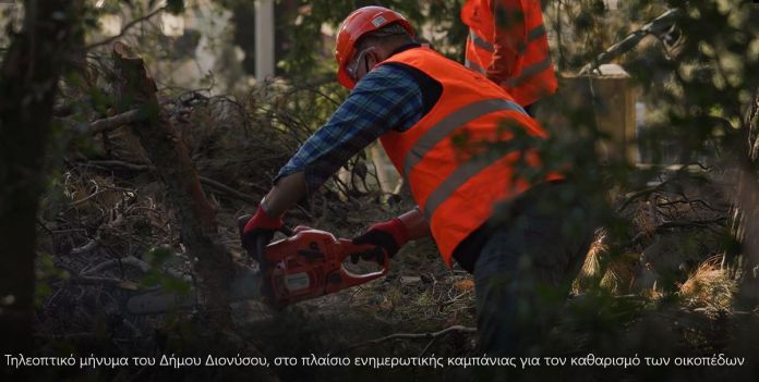 Ο Δήμος Διονύσου συνεχίζει με σειρά πρωτοβουλιών την ενημερωτική καμπάνια για τον καθαρισμό οικοπέδων και ιδιοκτησιών εντός των ορίων του από κορμούς, κλαδιά και απορρίμματα.