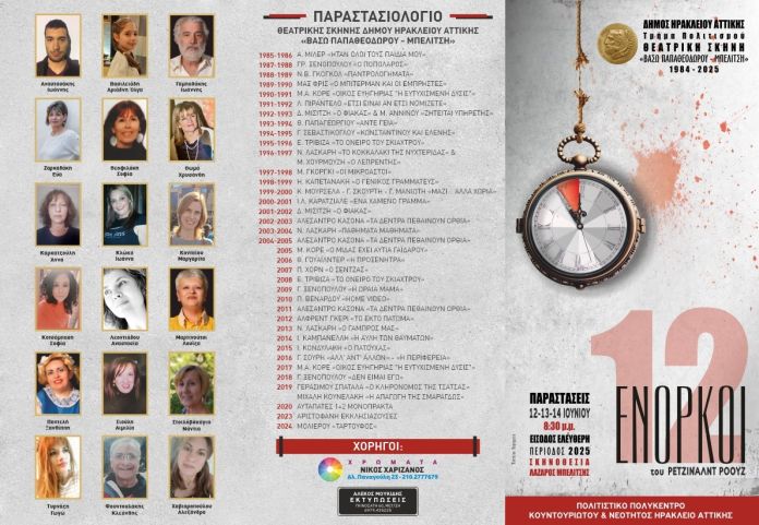 Το διαχρονικά επίκαιρο αριστούργημα του Ρέτζιναλντ Ρόουζ «Οι 12 Ένορκοι» (12 Angry Men) ανεβάζει στην φετινή έναρξη της καλοκαιρινή σεζόν η Θεατρική Σκηνή του Δήμου Ηρακλείου Αττικής. Σε σκηνοθεσία του Λάζαρου Μπελίτση και με θίασο 18 ερασιτεχνών ηθοποιών και συντελεστών, η παράσταση ανεβαίνει Παρασκευή 12, Σάββατο 13 και Κυριακή 14 Ιουνίου στην θεατρική αίθουσα του Πολιτιστικού Πολύκεντρου «Ηλέκτρα Αποστόλου» (Κουντουριώτου & Νεότητος). Ώρα έναρξης των παραστάσεων στις 20.30 το βράδυ με ελεύθερη είσοδο για όλες και για όλους.