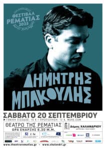 Ο Δημήτρης Μπάκουλης, ο πιο επιδραστικός τραγουδοποιός της γενιάς του, μετά την επιτυχημένη καλοκαιρινή περιοδεία ανανεώνει το ραντεβού του με το κοινό σε μία μεγάλη φθινοπωρινή συναυλία στο Θέατρο Ρεματιάς. Ο νεαρός ερμηνευτής και συνθέτης της μεγάλης επιτυχίας «Τα κβάντα» αλλά και τραγουδιών όπως «Της μνήμης το μαχαίρι», «Κλώνος» κ.ά., μαζί με εξαιρετική μουσική παρέα και απρόσμενες συμμετοχές, σε ένα πρόγραμμα με αγαπημένα τραγούδια.