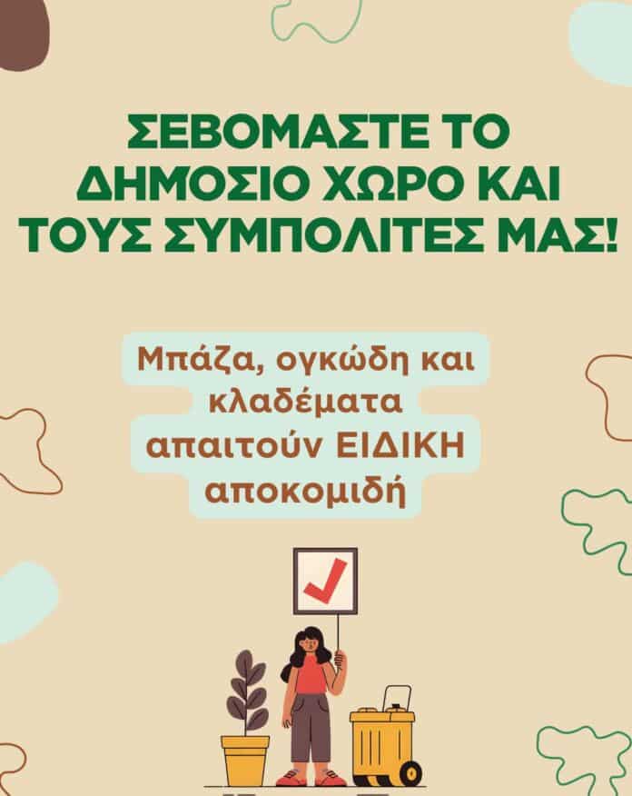 Ο Δήμος Χαλανδρίου ενημερώνει τους πολίτες ότι μπάζα, ογκώδη και κλαδέματα απαιτούν ειδική αποκομιδή και ΔΕΝ πρέπει να απορρίπτονται ανεξέλεγκτα σε πεζοδρόμια, δρόμους και πλατείες.
