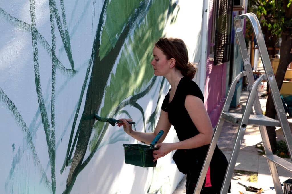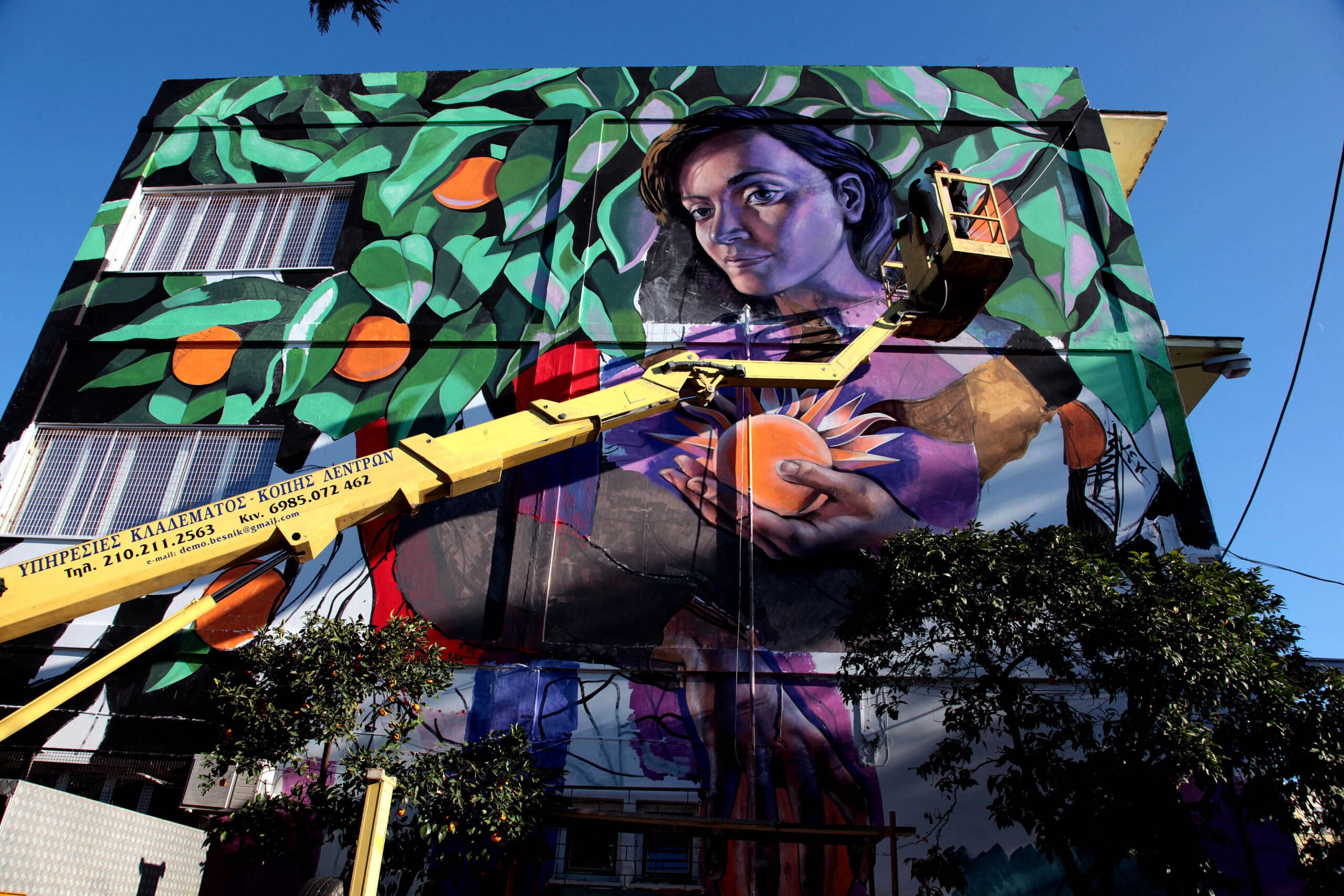 «Το δέντρο της σοφίας» στους τοίχους του 1ου Λυκείου – Πώς φτιάχτηκε το καταπληκτικό graffiti από τους δυο Ολλανδούς καλλιτέχνες Michel Velt και Roos Vink (βίντεο)