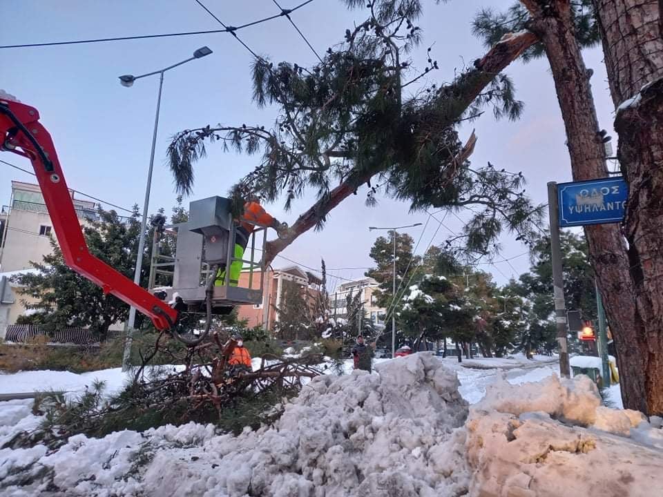 Αισχρό ψέμα είναι και η δήλωση στην ίδια ανακοίνωση ότι «συνεργεία της Περιφέρειας Αττικής απομάκρυναν πεσμένα δέντρα από την οδό Παπανικολή». Το δρόμο τον διάνοιξαν τα συνεργεία του Δήμου Χαλανδρίου, απομακρύνοντας συγχρόνως τους κορμούς επτά μεγάλων δέντρων που είχαν καταπέσει πάνω σε γραμμές του τρόλεϊ και σε καλώδια του ΔΕΔΔΗΕ, όπως αποδεικνύεται από τις φωτογραφίες (Αριστοτέλους & Παπανικολή, Υψηλάντου & Παπανικολή) που συνοδεύουν την ανακοίνωση.